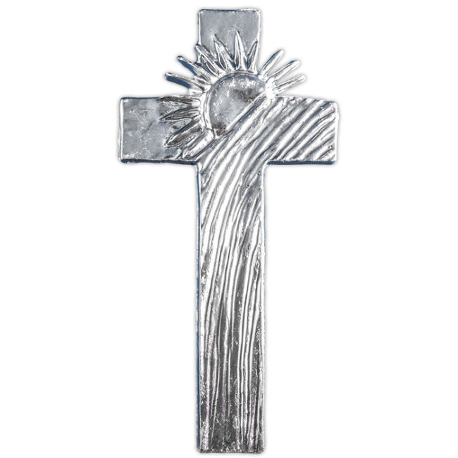 Verzierwachs Kreuz mit Sonne glanzsilber