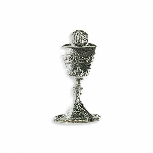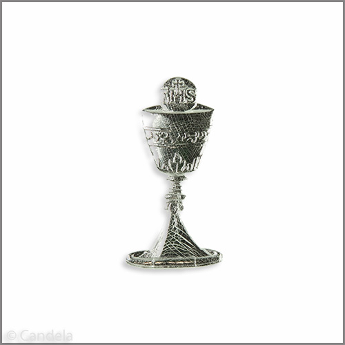 Kommunionkerzen Wachsmotiv Kelch mit Hostie 45mm silber