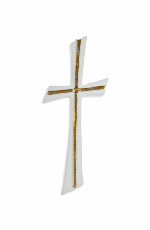 Kommunionkerzen Wachsmotiv Kreuz 11cm, gold auf weiß