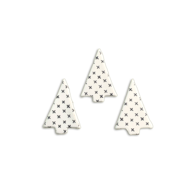 Wachsmotiv Tannenbaum weiß mit schwarzen X, 3St.